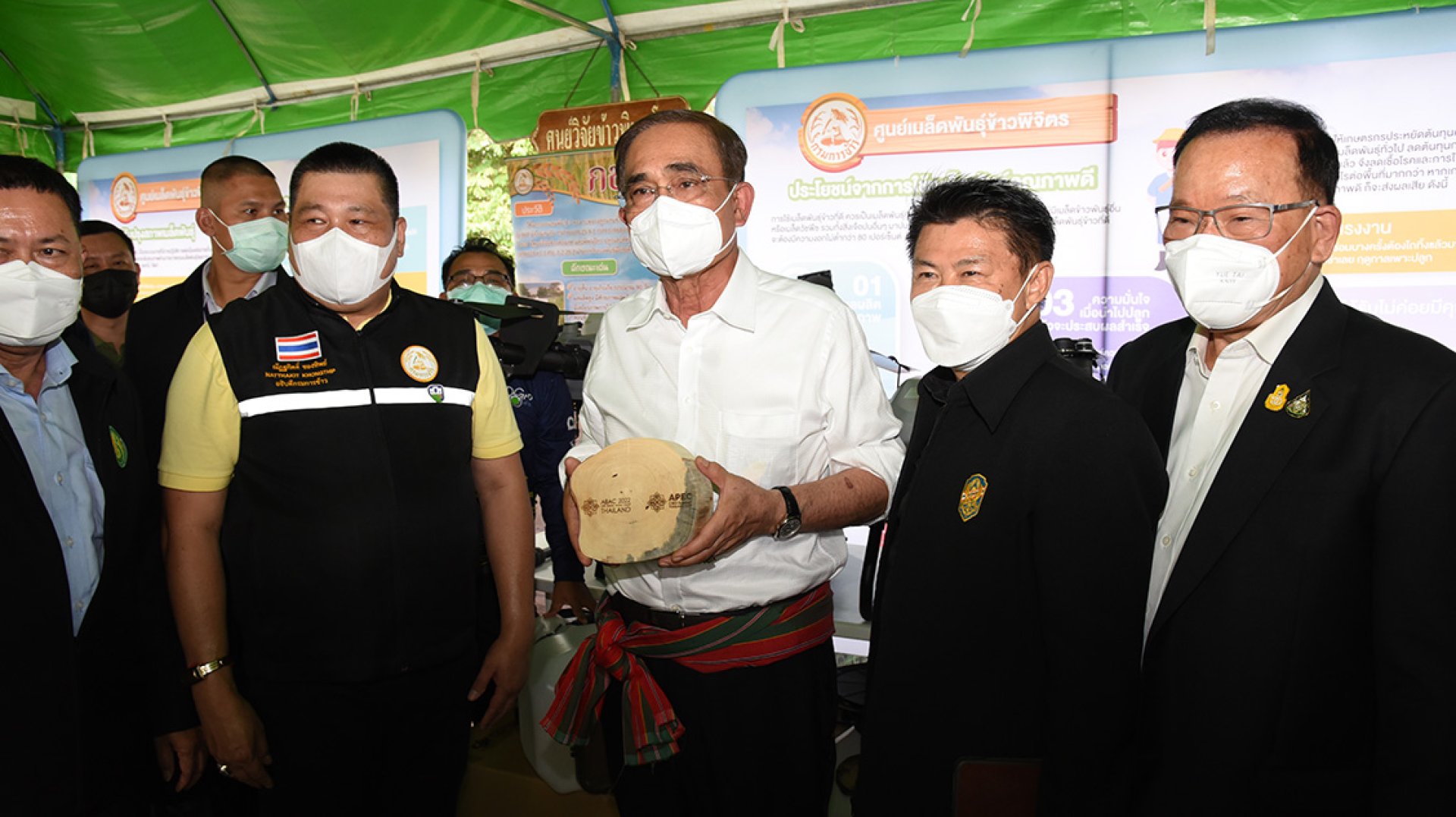 ดร.โดรน ผู้ใหญ่ใจดี มอบของที่ระลึกแก่พล.อ.ประยุทธ์ จันทร์โอชา นายกรัฐมนตรี และรัฐมนตรีว่าการกระทรวงกลาโหม เนื่องในโอกาสที่ท่านเข้าชมบู๊ธจัดแสดงเทคโนโลยีโดรนการเกษตร และโดรนสำรวจ ในงาน Kick Off มาตรการช่วยเหลือ และยกระดับรายได้เกษตรกรผู้ปลูกข้าว ปีการผลิต 2565/66 ณ สนามหน้าศาลากลางจังหวัดเพชรบูรณ์